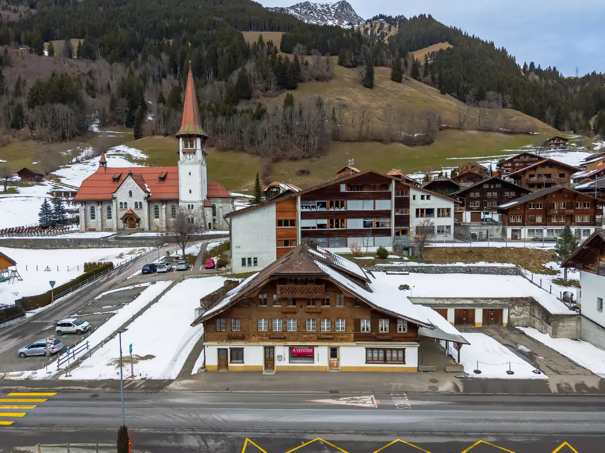 Au cœur du village de Jaun, cet immeuble mythique s’inscrit naturellement dans la vie locale, entre tradition, dynamisme commercial et histoire villageoise. Sa position en bordure de la route principale lui confère une présence marquée dans le paysage du village, idéale pour une activité commerciale bénéficiant d’un passage régulier, été comme hiver. Construit selon les codes architecturaux régionaux, le bâtiment abrite un café/commerce au rez-de-chaussée, ainsi que plusieurs logements, complétés par de vastes espaces de stockage. Les rénovations à réaliser permettraient d’adapter les surfaces commerciales/artisanales aux besoins spécifiques d'une future activité. Ce bien offre une combinaison harmonieuse entre activité économique, habitat et cadre alpin, au sein d’une commune prisée pour son authenticité et son attrait touristique. Cet immeuble mixte à Bellegarde (Jaun) en Gruyère représente une opportunité d'investissement attrayante et unique tant pour des investisseurs cherchant à diversifier leur portefeuille, que pour un propriétaire désirant exploiter l'arcade commerciale tout en bénéficiant de revenus locatifs grâce aux appartements.