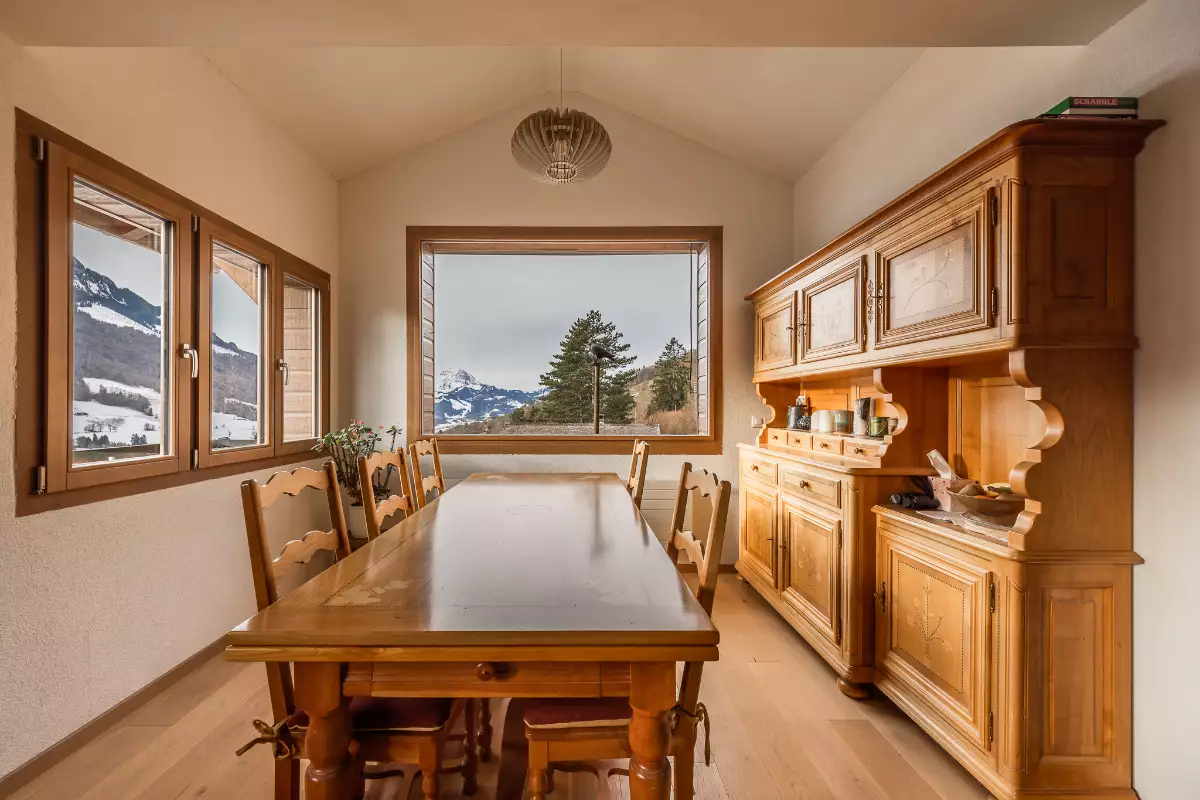 Tel un écrin suspendu sur la roche, ce chalet s’adresse aux amoureux de panoramas rares ! Ici, le temps semble s’arrêter, porté par la quiétude de la nature, la position dominante et un généreux ensoleillement. Ce bien profite d’un environnement préservé et garanti - grâce à la typologie du terrain ainsi que la vaste parcelle sur laquelle il est situé - assurant ainsi calme, intimité et pérennité de la vue. L'accès à ce bien s'effectue par des escaliers, et l'habitation s'articule sur trois niveaux. Le rez de chaussée supérieur correspond aux standards actuels en terme de confort, et est agréablement baigné de lumière grâce aux vastes ouvertures. Les combles, qui sont à rénover, offrent par ailleurs un beau potentiel d’aménagement, permettant d’adapter ce bien à vos envies et projets futurs. De plus, les extérieurs garantissent des moments uniques et privilégiés dans un cadre unique, à quelques minutes de Charmey ou Bulle, pour rejoindre toutes les commodités. Par ailleurs, le garage double avec porte électrique confère un confort quotidien bienvenu et appréciable, tant pour une résidence principale que secondaire. En définitive, les caractéristiques de ce bien en font un bien rare et à saisir, sans hésiter. Nous sommes à votre disposition pour une visite !