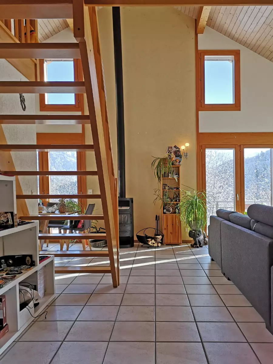 - 1 séjour/salle à manger, avec poêle suédois et accès balcon